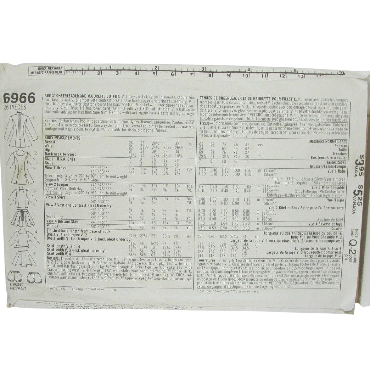 1985 Uncut Girl S Size 10 Simplicity Cheerleader Majorette Sewing Pattern 6966 Ebay
